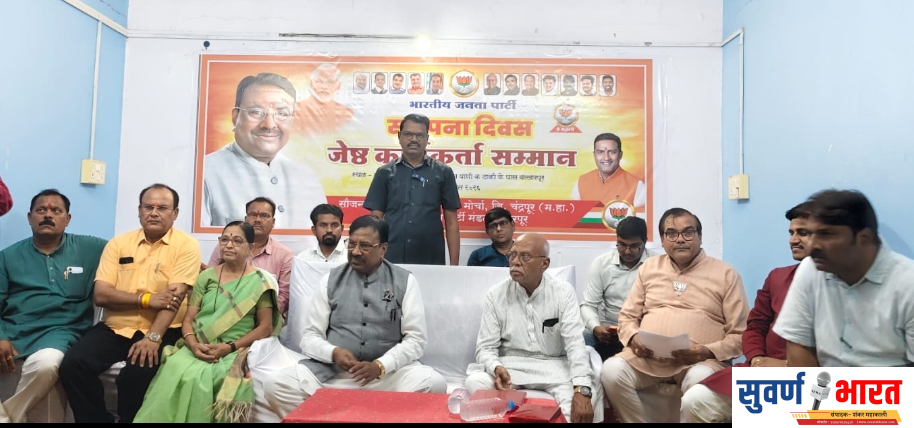 बल्लारपूर : भारतीय जनता पक्षाच्या स्थापना दिनानिमित्त, भारतीय जनता युवा मोर्चा आणि भाजपा बल्लारपूर यांच्या संयुक्त तत्वावधानाखाली बुधवार, ८ एप्रिल रोजी IMA हॉल मध्ये कार्यक्रम आयोजित करण्यात आला. या कार्यक्रमात पक्षाच्या वरिष्ठ आणि समर्पित कार्यकर्त्यांचा भावपूर्ण सन्मान केला गेला आणि त्यांच्या योगदानाची आठवण ठेवण्यात आली.