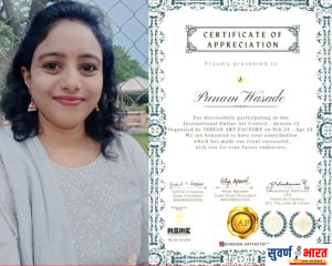 याच उच्च शिक्षित पुनमने मध्यंतरी इटली येथे पार पडलेल्या एका भव्य चित्रकला स्पर्धेत भाग घेवून तृतीय क्रमांकाचे पारितोषिक मिळविले! त्यामुळे साहजिकच तिच्या सोबत वणी शहराचे नाव रोशन झाले.